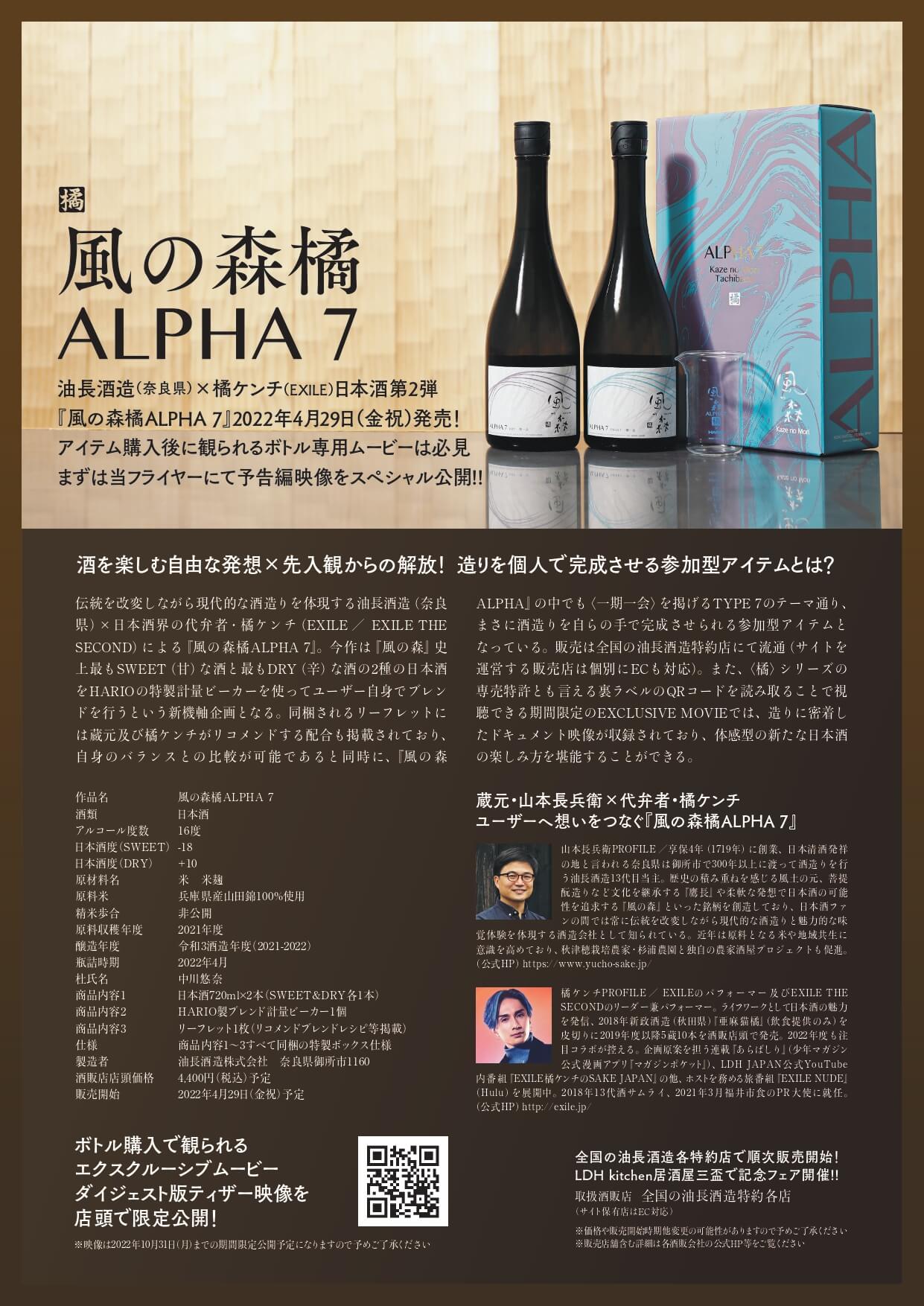 2本のお酒を調合・・自分好みの味の”風の森”を造る・・という楽しい仕掛けのALPHA7。